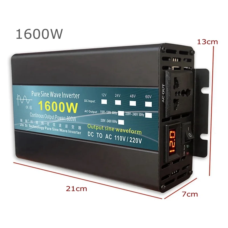 Pure Sine Wave Inverter DC 12v/24v To AC 220V 1000W 1600W 3000W Power Converter Voltage Transformer Solar Inverter LED Display
