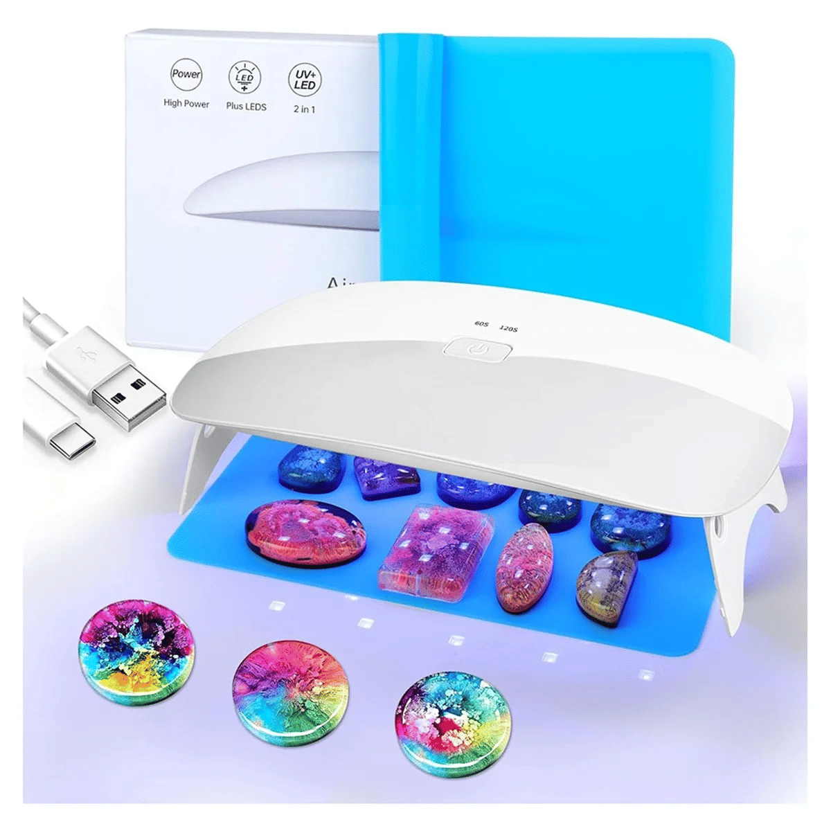 30 upgraded dual soft supply lamp beads (UV+LED), 48W. The lamp beads are evenly distributed, the curing is more uniform, the curing effect is stronger, and the curing pace is faster. (The number of lamp beads determines the ability of the UV lamp!) You will get 1pcs resin UV lamp, 1pcs craft silicone pad, 1pcs charging cable. Extra huge length 9 x 5Inch, even huge sizes or a number of small sizes UV resin can be cured in a single go, decreasing curing times and extending efficiency. Our UV lamp contains a collapsible assist with a light-weight penetration port for hand held curing of larger UV resins. 60 (one click)/120s (two clicks)/5 minutes (press and maintain for three seconds) timer shutdown design to avoid resin shrinkage or warping because of overheating, allowing you to with a bit of luck do other issues whereas curing UV resin. Dual mild supply lamp beads (UV+LED) are eye friendly, you will not really feel tired whatever how long you employ it. Curing various UV resins, rhinestone jewelry glue, LED glue, nail glue, etc. (Different glues have varied curing times) The respectable UV resin curing lamp is the finest present for UV resin workers/lovers on Christmas, Valentine's Day, Mother's Day, birthdays, etc. Colour:White Material:Plastic Package Contents: 1set * uv resin lamp Only the above equipment content, varied products are not included. Note: Light reflection and diverse exhibits can cause the color of the object within the photograph a bit diversified from the genuine thing. The size allowed error is +/- 1-3cm.