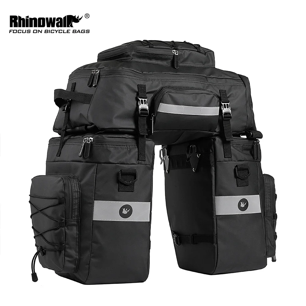 Rhinowalk Bike Pannier Bag 3 in 1 65L Big Capacity with Rain Cover Cycling Rear Rack Seat Trunk Bag for Mtb&Road Folding Bicycle