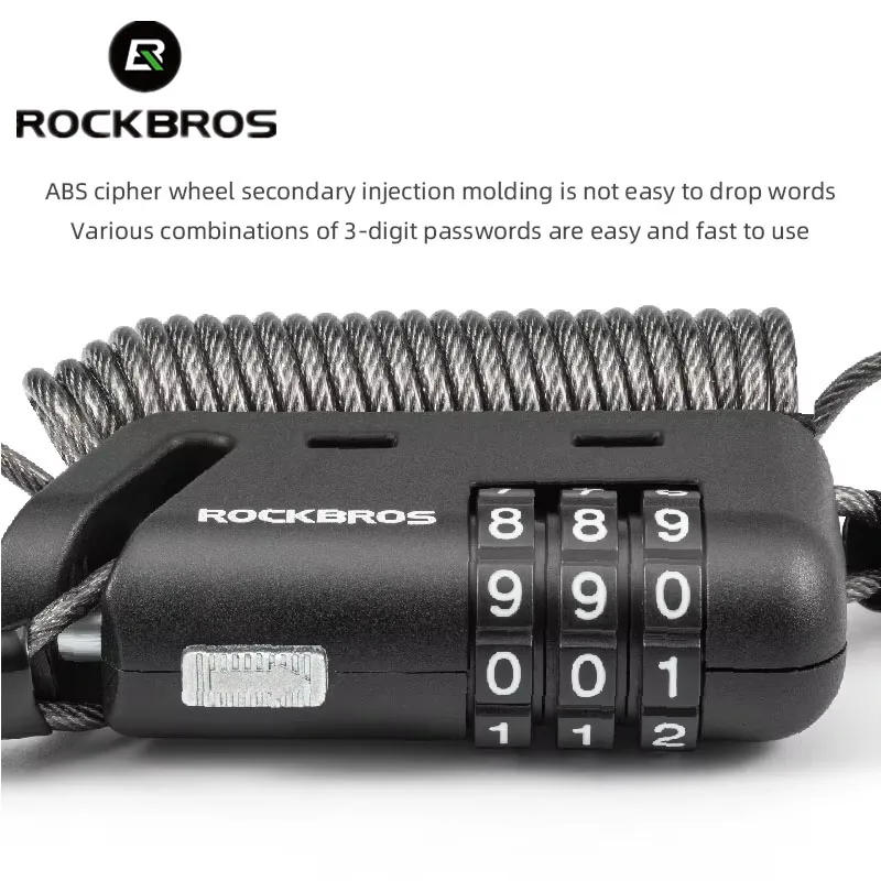 ROCKBROS Helmet Lock Antitheft Mini Bicycle Lock 3 Digit Password Lock Ultralight Flexible Bike Lock Motorcycle Helmet Lock Part