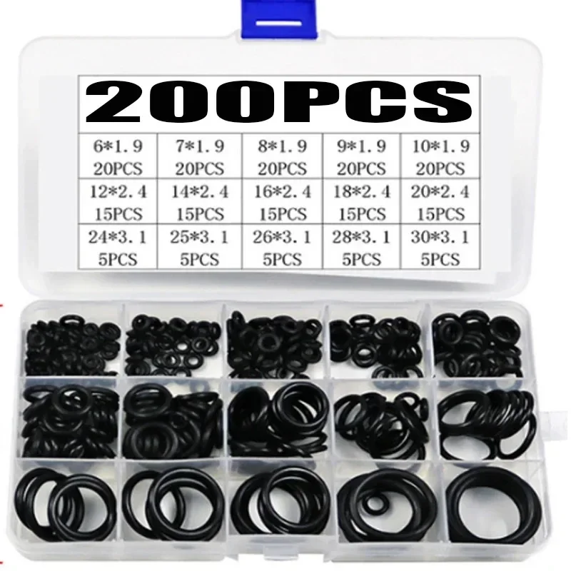 Description: Product name: O-ring Purpose: Hole seal, oil seal, dust seal, fixed seal, shaft seal, rotary seal Scope of application: automobiles, machinery, decoration, electric appliances, cylinders, bearings, pumps, water pipes, valves, doors and windows, spraying, rollers, chemical pipelines Features: High temperature resistance, wear resistance, corrosion resistance Package Included: 200/270/279/740/950/1200Pcs x O-ring