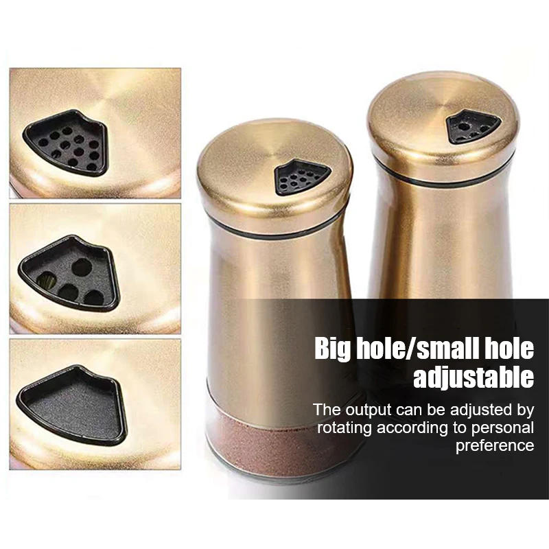 Description Salt and Pepper Shaker is terribly and reusable, very convenient Classic, classy design; home kitchens and restaurant With a cover, this pepper bottle is handy to use It could be a pleasant helper for you Small size, now not taking on area The can lid rotates to open and close, and allows you to control how much seasoning is dispersed, leaving minimal or no wasted condiment to serve Features -Color:Golden -Material:Stainless Steel, Glass -Not only for domestic use, but also outdoors use, corresponding to barbecue, camping, -Salt Shaker is very suitable for storing condiments, spices, seasonings, salt, peppers, -Dust-proof, tightly sealed, strong and anti-drop, Salt Shaker is very sturdy for a time -Convenient storage, safe and durable, and might effectively stop blending condiments -Small and light, clean to carry and use, will carry you a closer experience The product has positive workmanship Includes:1 Pepper Shakers