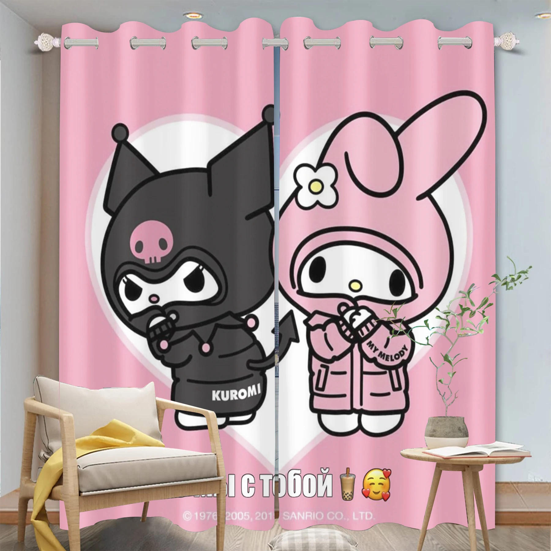 Sanrio Kuromi 3D Print Curtain Cartoon Polyester Cute Various Sizes Window Blackout Bedroom Living Room Style Home Decoration