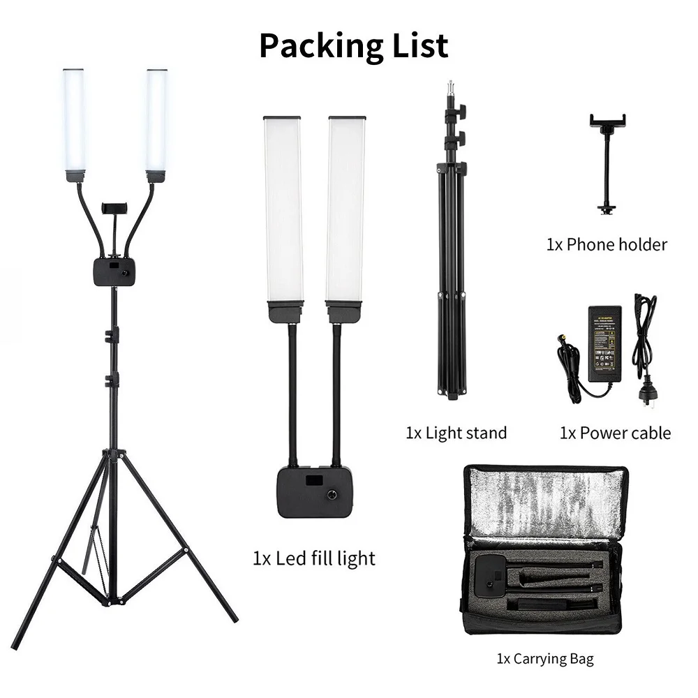 Selens Photographic Lighting 3200-5600K Double Arms Fill LED Light Video Lamp With Tripod For Photo Studio Kits Live Streaming