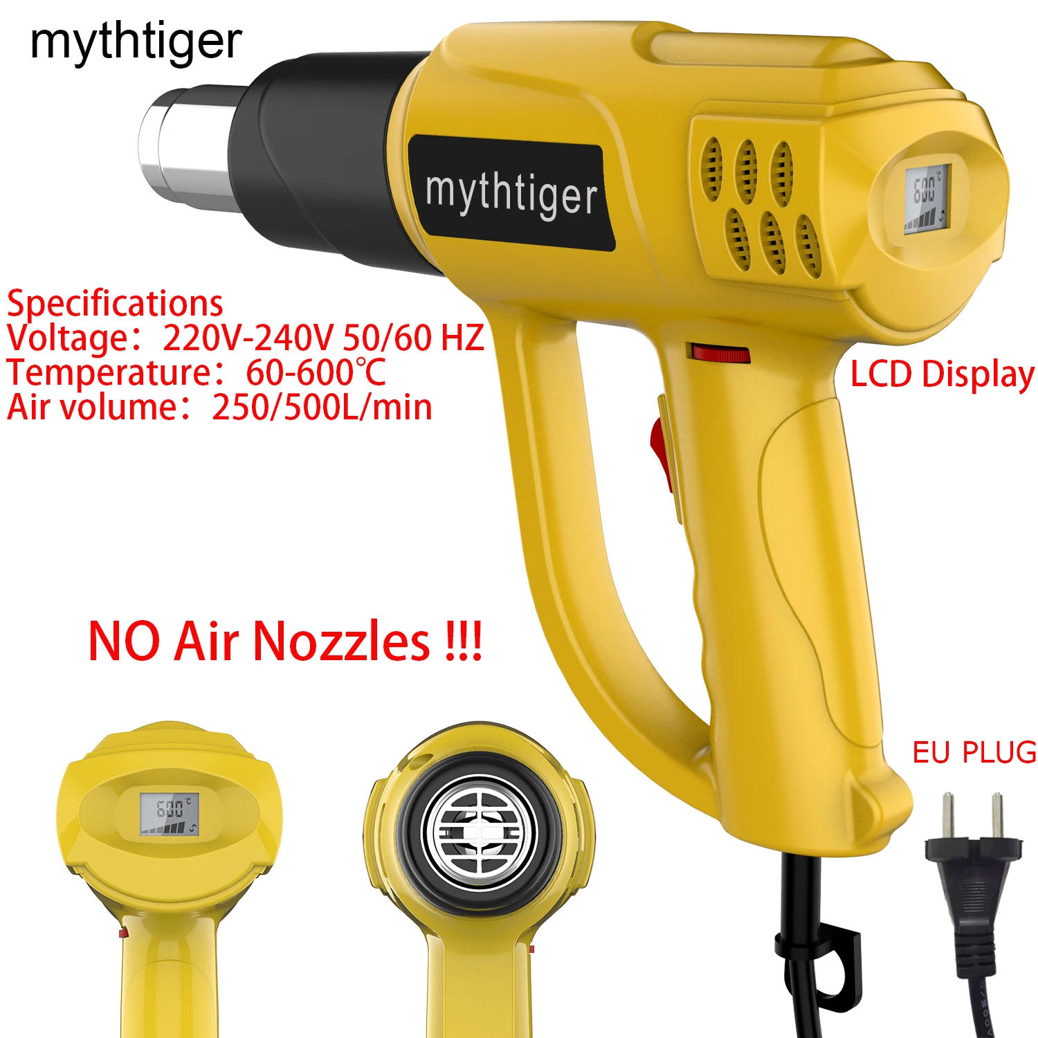Specifications Voltage:220V-240V 50/60 HZ PLUG:EU Temperature:60-600℃ Air volume:250/500L/min