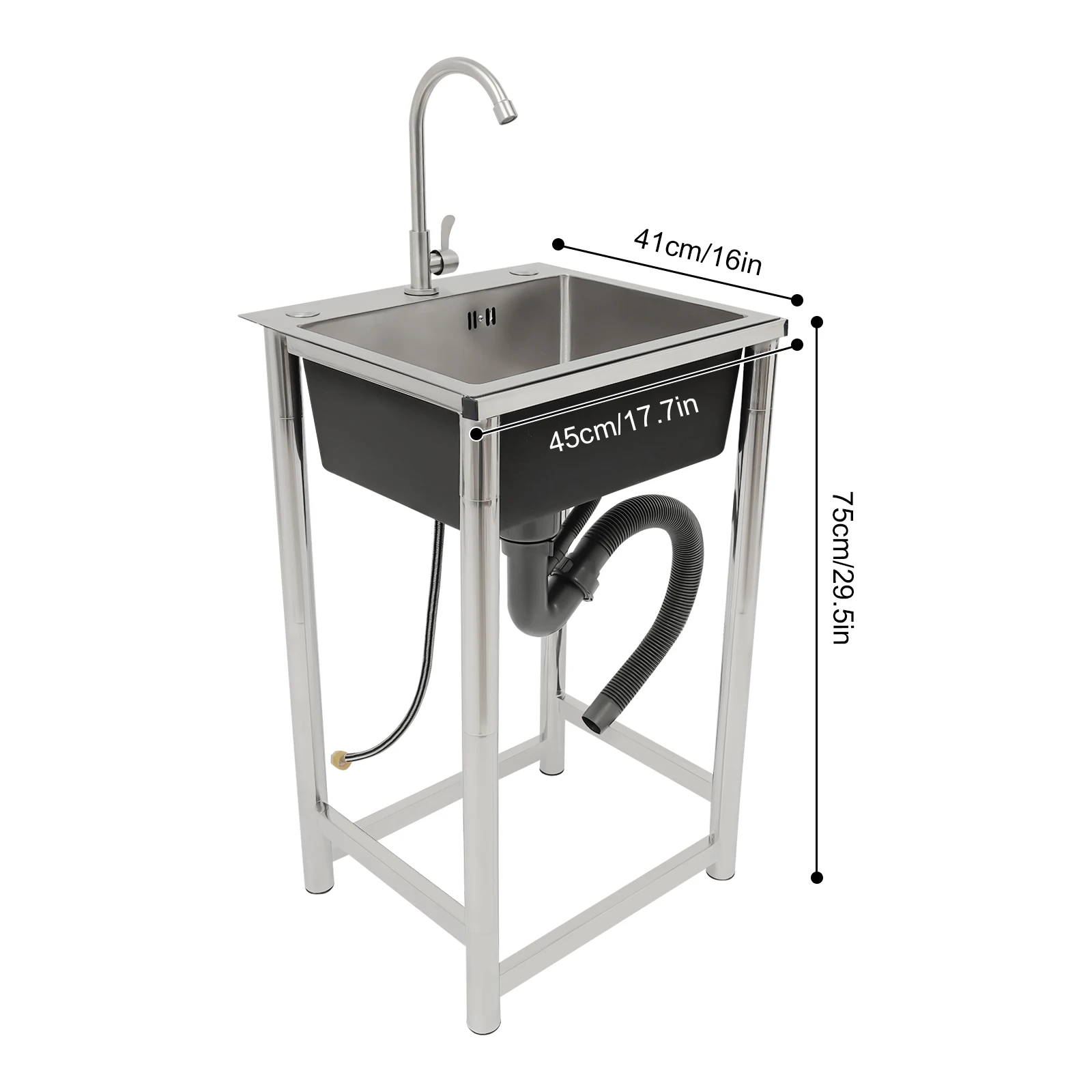 Description Are you seeking a handy and sensible kitchen cleaning sink? Please take a look at our product, which is made from top rate stainless steel materials with cord drawing and welding processes, physically powerful and sturdy Its enlarged and deepened sink not just alleviates splash issues but in addition improves area utilization for washing huge quantities of fruits and vegetables and cooking utensils Specification Color: Silver Style: Modern Shape: Rectangular Assembly Required: Yes Mounting Type: Floor Mount Material: Stainless Steel, ABS Process: Wire Drawing, Welding Sink Inner Size: 40*30*17cm/15*11*6 Sink External Size: 45*40*22cm/17*15*8 Product Size: 45*41*75cm/17*16*29 Package Size: 48*43*26cm/18*16*10 Gross Weight: 5/11 Package Included 1*Kitchen Sink 1*Faucet Other Accessories for Assembly Application This product can be utilized to bathe vegetables, fruits, pots and pans, and different kitchenware It is right for homes, restaurants, hotels, bars, cafes, kitchens, laundry rooms, and so on Key Features Made to Last: High-quality chrome steel and exquisite wire drawing job make this product bright, dust and oil-resistant, wear-resistant and anti-scratch, challenging to rust and deform, making certain a long provider lifestyles Convenient Washing: The 360° rotatable faucet with a single handle permits you to have a snug and easy washing trip Reserved soap solution holes enable you to easily install the cleaning soap dispenser (not included), attaining a extra hygienic cleansing Large Sink Space: The enlarged sink size(15*11*6) makes it probable to deal with extra pots and pans while nonetheless mitigating splashing Innovative Design: Thickened anti-condensation coating effectively prevents condensation and dripping The mute pad design can efficiently muffle the noise attributable to falling water Quick Draining: The V-shape drain pipe and X-shaped inverted stream design give the sink a good drainage function, which may effectively prevent water from accumulating The clear out basket can hold broad stable residues inside the sink and preserve the pipe from blockading Stable and Safe: Fully reinforced sink corners, thickened standing brackets, and non-slip feet mats make it structurally secure without smoothly sliding or destructive the ground Simple Installation: Simple structure and a full differ of set up equipment be certain that you could install the sink soon and accurately to fulfill your needs in a brief period Details Refined R-corner: This design achieves a dead-end cleansing impact and likewise increases the gap for laundry and draining Anti-overflow Hole: This design can efficiently prevent the water from overflowing when you don&;t turn off the faucet in time Notes 1 examine the scale intently earlier than ordering 2 do not clean it with hard tools like steel wire balls for a longer service existence three enable the slight coloration distinction caused by the capturing light and 1-3cm error due to manual measurement, and ensure you do not mind earlier than ordering