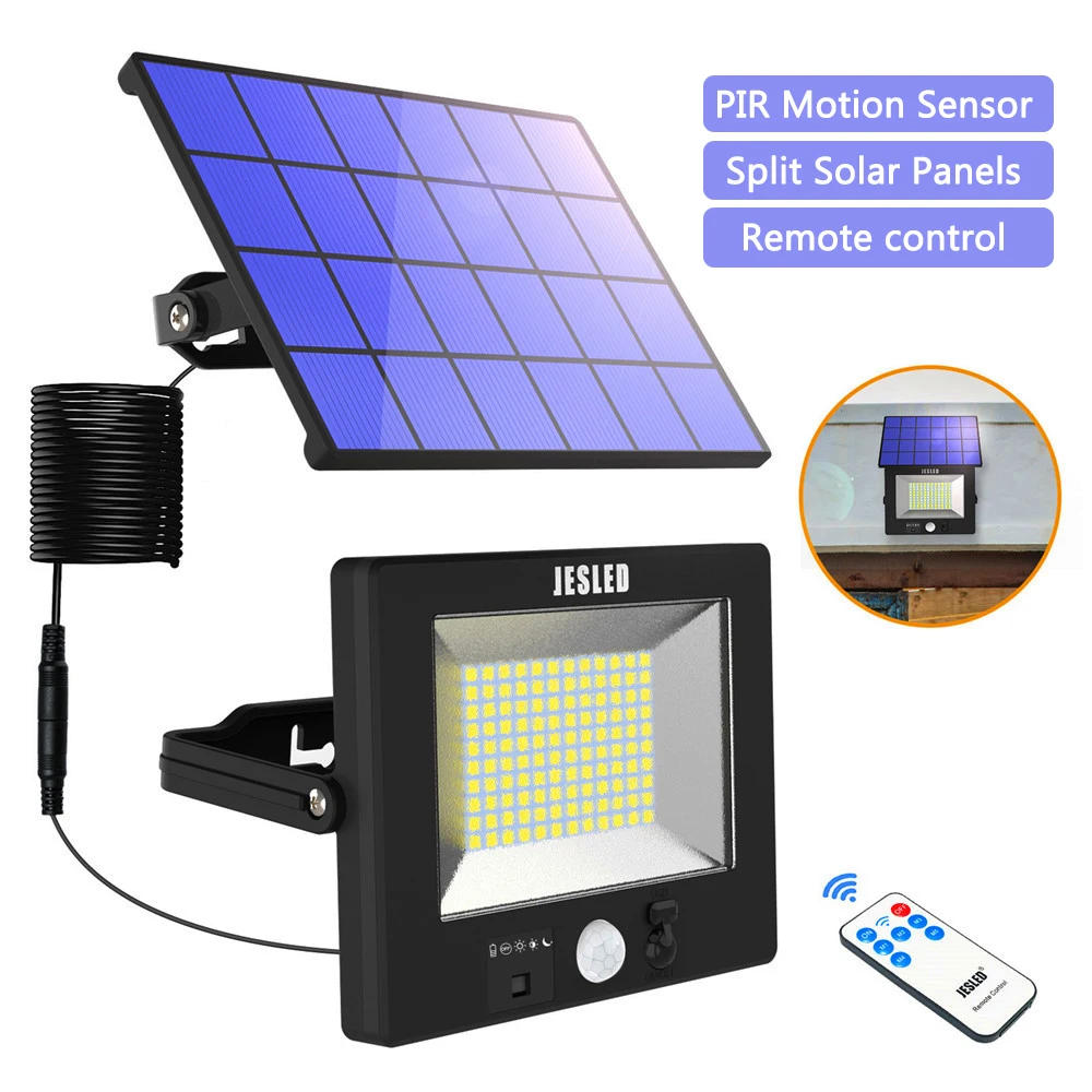 Description:Item Name: LED Flood LightColor Temperature:6000KLight Source:120LedsPower shipping : solar energy (USB Charging and Replaceable Battery)Waterproof Grade: IP66 (Can now not put into the water) This flood soft with PIR motion sensor:Installation height: 2-3mLight Angle:160Sensing Angle:120°Sensing Model:5 Adjustable Modes About this item【Integrated/Split Solar Panels】 The solar light fixtures has a unique structural design which permits for Integrated or cut up solar panel set up with a 5M detachable energy cable, offering extra freedom of installation. You can set up the photo voltaic panel on a sunny roof or balcony to extend charging efficiency.【Super Bright and Efficient】 The solar safety gentle makes use of 1 hundred twenty fine lamp beads to provide very best illumination, brighter than diversified similar lamps, with a maximum output of 1000LM. The photo voltaic panel absorbs sunlight, converts it into electrical energy and shops it in a 2600mAh battery with a conversion functionality of 22%. Charges 6-8 hours within the solar through the day and runs all night on a whole charge.【5 Adjustable Modes】 ①M1: push back when no movement is detected, turn on at full brightness when motion is detected;②M2: maintain dimming when no movement is detected, turn on at complete brightness when movement is detected;③M3: maintain dimming all night, motion sensor stops working;④M4: Light sensor does not work, activate at whole brightness when motion is detected;⑤M5: Emergency mode, whole brightness all of the time.【IP66 Waterproof】 The outside solar lighting fixtures is made of tremendous ABS material, which is durable and durable; the built-in sealing silicone ring is waterproof and dustproof, with a protection level of as much as IP66, which might face up to every kind of dangerous weather. Ideal for home gardens, indoor emergencies, villa corridors, garden pools, avenue lights.【USB Charging and Replaceable Battery】 The photo voltaic wall lighting fixtures outdoor is like minded with photo voltaic and USB chargers and has been designed with a separate battery compartment, which is terribly user-friendly. JESLED provides a 60-day complete refund and a 2-year warrantly on photo voltaic flood lights with sensor (1-year warrantly at the batteries). 24/7 after gross sales service is available, please touch us if in case you've got any questions.