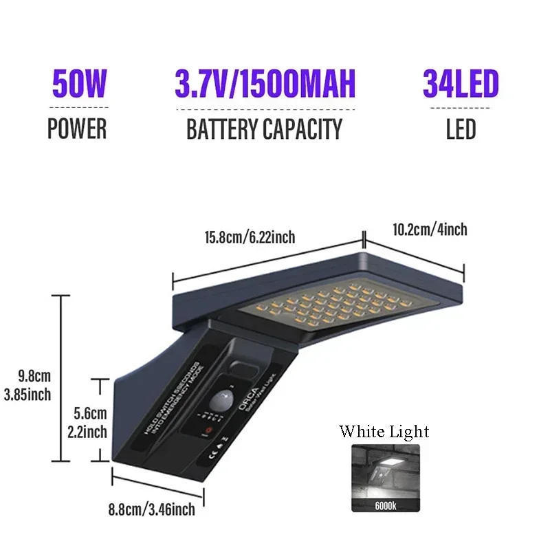 Specification Material: ABS shell + PC lampshade Voltage: 3(V) Battery capacity: 50w(1500mah) 80w(3000mah) 120w(5200mah) Solar panel: 50w(6v-1) 80w(6v-2) 120w(6v) -4w) Waterproof level: IP65 Control mode: human physique sensor + light management sensor + handheld remote control + tender physique button Charging time: about 6h Working time: 8-10h three forms of sensor mode mode Mode1:low light + motion sensor mode The mild doesn't illuminate in the process the day, at evening when someone walks by, the light will dimly eradicate darkness from for 20 seconds, no induction. Mode2:Motion sensor mode No gentle through the day, totally illuminated at evening when someone passes by, and routinely extinguished for 20 seconds when no one is around. Mode3: Light management mode No lights in the course of the day, barely brilliant at night, human detection operate is not grew to become on Sensing range: 4-10m / Sensing angle: 120° Remote management goods have 3 colour temperature could be switched: (white mild 6000k) (natural gentle 4500k) (warm white light 3000k)