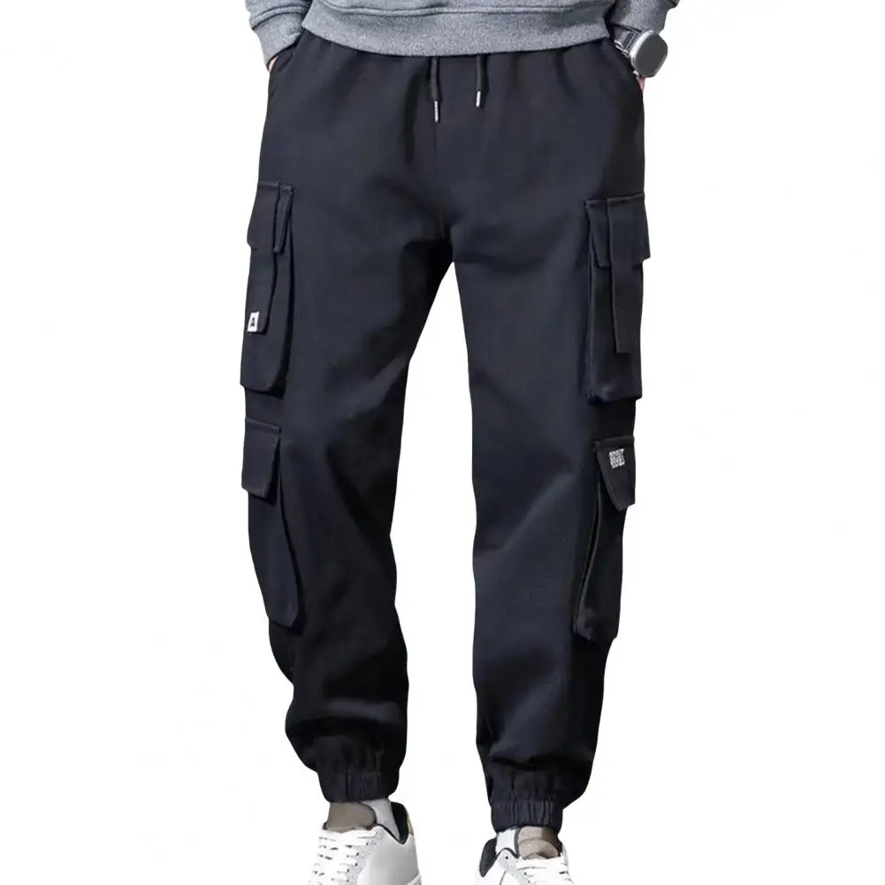 Solid Color Drawstring Trousers Men Elastic Waist Cargo Pants Men's Cargo Pants with Drawstring Elastic Waist Multi for Daily