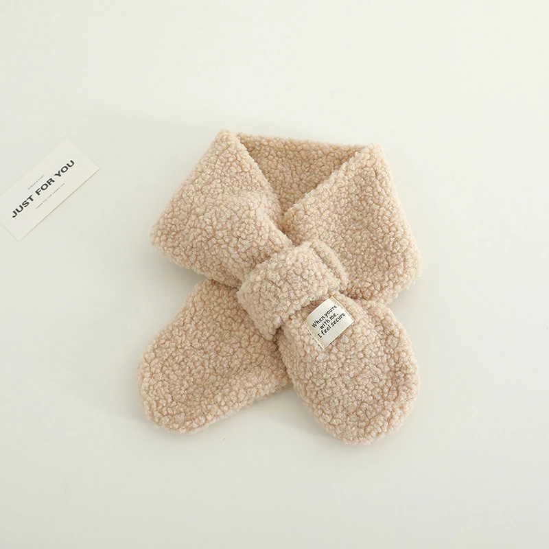 Solid Color Winter Baby Scarf Lamb Wool Korean Kids Neck Warmer Boys Girls Windproof Warm Cross Scarves