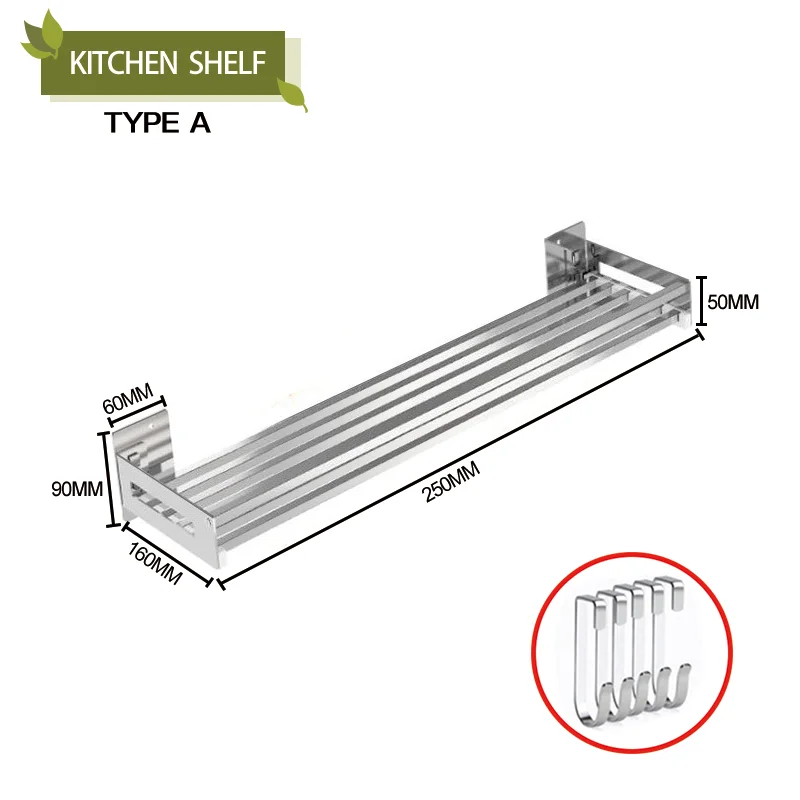 Spice Rack Wall Mount Kitchen Spice Organizer Storage Shelf Stainless Steel Shelves Holder for Kitchen Bathroom Household Items