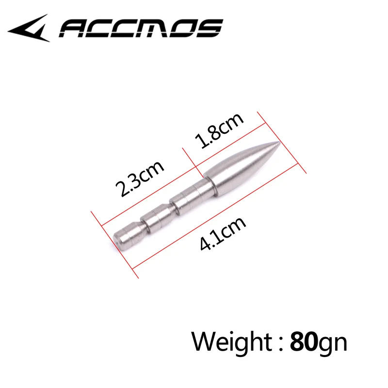 Stainless Steel Bullet Point Tip for ID, Arrow Shaft, Arrow Head, DIY Archery Accessory, 80, 100, 120, 150, 200 Grain, four MateDescriptions: Material: Stainless Steel Weight:80/100/120/150/200 Grain Fit For ID four arrow Shaft Package: 12pcs arrow head rial:Stainless Steel