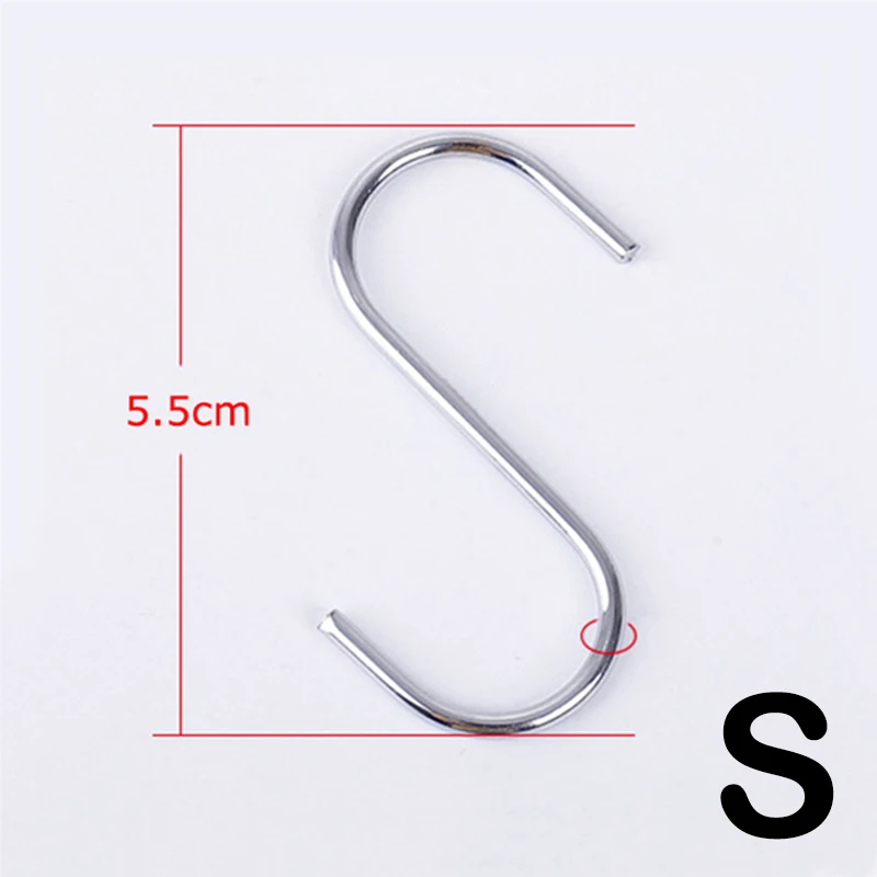 Specification: Name: Stainless metal S-shaped hook Material: Stainless metallic Process: Electroplating Color: Silver Size: 9cm; 7cm; 5 Applicable occasions: bathroom, toilet, kitchen, balcony, large and small supermarkets, clothes stores, exhibitions, and so forth Description: Multifunctional chrome steel S-shaped hook, domestic storage, tender surface, no longer hurting hands, clear and beautiful, non-sticky, stable design, nice load-bearing, durable, effective materials, demanding to deform, demanding to rust, saving space, small and light, for you Create a high quality existence Warm reminder (this product is a hook, other products are renderings)