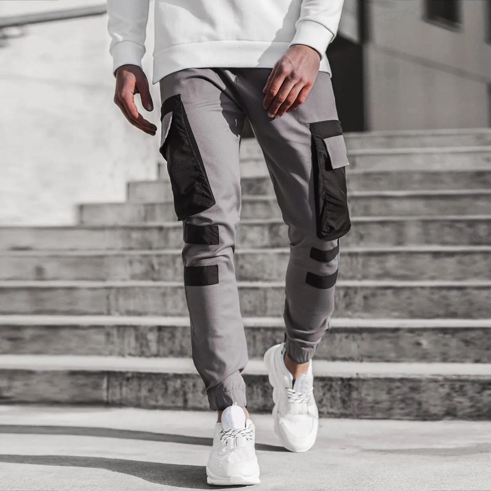 Stitching Skinny Leg Fashion Multi-Pocket Men Casual Pants Straight Streetwear Man Trousers Y2k Clothes Gym Work Pantalones