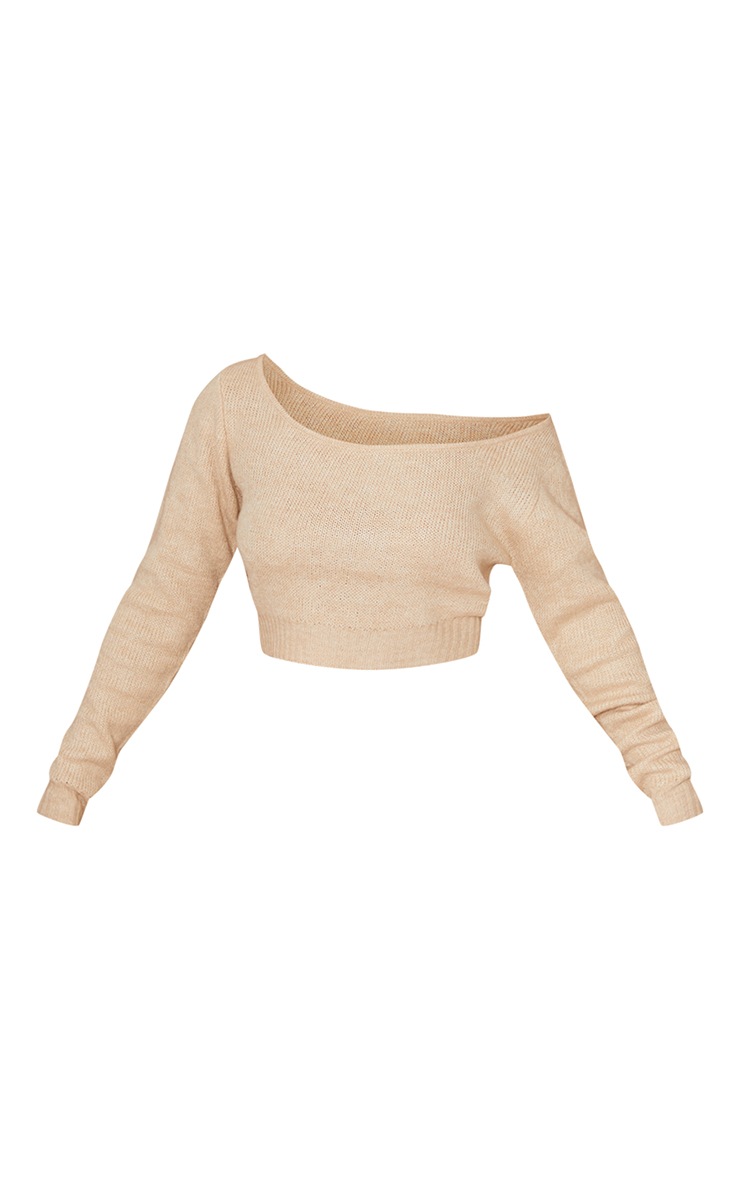 Stone V Neck Off Shoulder Soft Knitted Crop Jumper