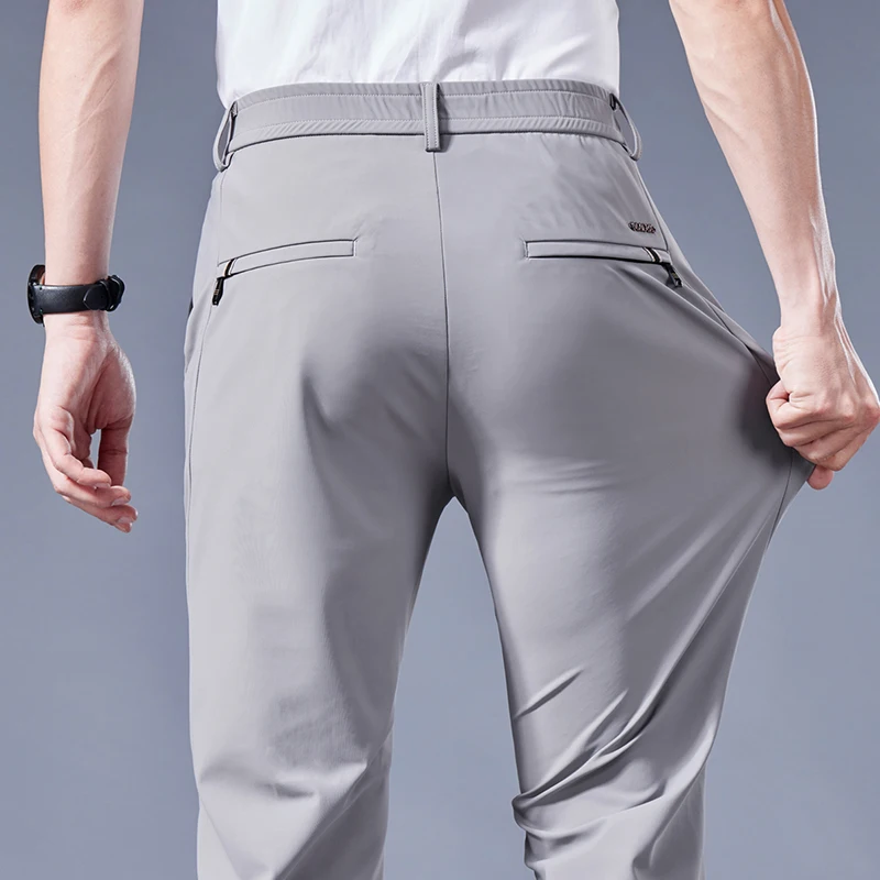 Summer Joggers Men Thin Ice Silk Fabric Four-sided Elastic Casual Pants Cargo Trousers Streetwear Sweatpants