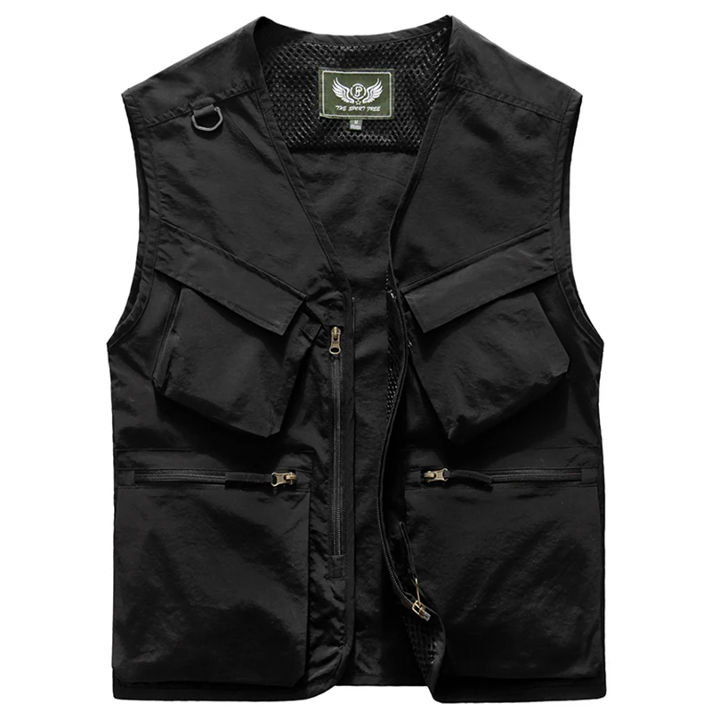 Summer New Vests Men US Plus Size Outdoor Tech Wear Tactical Multi-pocket Slant Pockets Camping Fishing Hiking Safari Cargo Vest 99% Nylon Zipper closure Hand Wash Only Material: Utility vest for men, made of light-weight and sturdy material, quickly dry and water resistant Mesh lining: Black fishing safari vest for men with mesh lining, breathable and skin-friendly Multiple pockets: Mens cargo vest with eight pockets total, four flap chested pockets, 2 zipper pockets, 2 invisible pockets,easy to carry your individual belongings, a software vest for men in outside Feature: The fishing vest for males with V neck, zipper closure, clean to pair along with your t-shirt, casual pants, Removable back, can put the back in zippered storage to make it a mesh vest Occasion: Mens software work outdoor vest, suitable for work, fishing, outdoor, climbing, Photography, hunting, and more