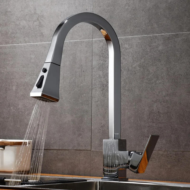 Tap Black and White Kitchen Faucet Dish Basin All Copper Hot and Cold Pull-out Rotating Household Showerhead Sink Basin Faucet