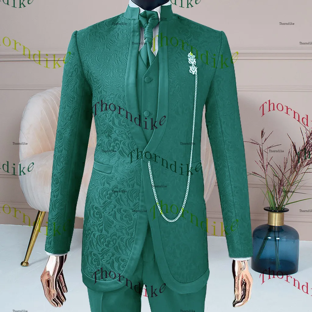 Thorndike Costumes Hommes Formal Men Suits Tailor-Made Wedding Tuxedo 3 Pieces Green Blazer Vest Pant Groomsman Party Groom Suit