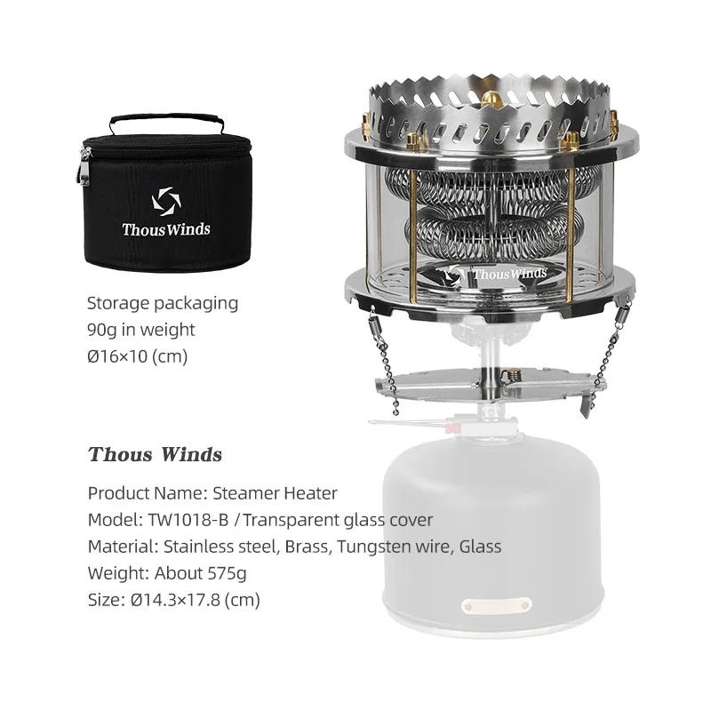 Design concept: A lightweight and convenient radiant heater that generates a lot of warmth by means of burning tungsten filaments, which might provide heating in a small area It could be easily put into your backpack and might be used for mountaineering tenting and self-driving camping Features: 1: Lightweight and handy design, weighs solely about 575 grams 2: Thicken the tungsten wire, which produces many of warmth radiation after burning, which can soon warmth up 3: Cooking stand, can boil water or cook meals while heating, and might be eliminated when no longer in use 4: Aluminum metal radiator plate can forestall immoderate heat from being transferred to the gasoline tank below to guarantee security 5: Universal base, suitable for most incorporated burners and break up burners Specifications: Brand: Thous Winds Product name: Firewheel heater Material: stainless steel, brass, aluminum alloy, tungsten wire, heat-resistant glass Weight: about 575G Packing list: Firewheel heater*1, anti-collision garage bag*1 warn: 1: In the case of low temperature, please preheat with a small hearth when using to avoid the glass conceal from rupturing due to the wide temperature difference, after which open the high fire after the preheating is completed 2: It is not commended to apply stoves with broad hobs, especially if the flame area exceeds this product, it'll cause the danger of glass disguise cracking 3: Before use, please verify whether or not the product is installed on the gasoline stove smoothly 4: Please hold the air circulating when utilizing this product, don't use it in a confined space to bypass accidents 5: The product will produce extreme temperature throughout use, please do not touch the product along with your pores and skin to avoid burns 6: When using the product, please don't shake the product to bypass scalding and injuries 7: When using this product, maintain a distance of more than 1 meter from flammable materials 8: Please place it in a spot where youngsters can&;t touch it, as a way to keep away from burns and injuries 9: Do no longer use this product at the cassette range to avoid accidents