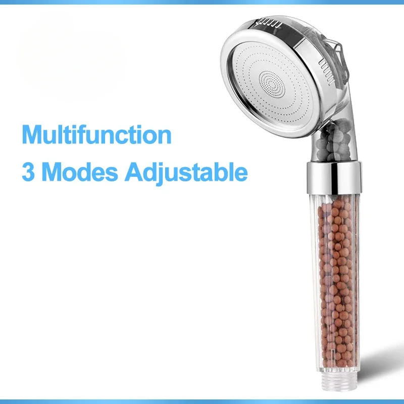 Three Modes Bathtub Shower Adjustable Jet Shower Nozzle High Pressure Water-saving Bathroom Negative Ion Filter Shower Nozzle
