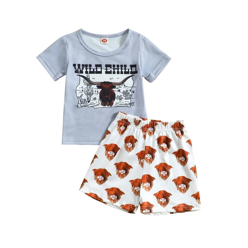 Toddler Baby Boy Western Clothes Short Sleeve Cartoon Letter Print T-Shirt Shorts Set