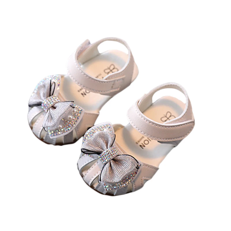 Toddler Baby Girl Sandals Summer Adorable Rhinestone Bowknot Hollow Out First Walking Shoes Infants Non-Slip Soft Sole Shoes