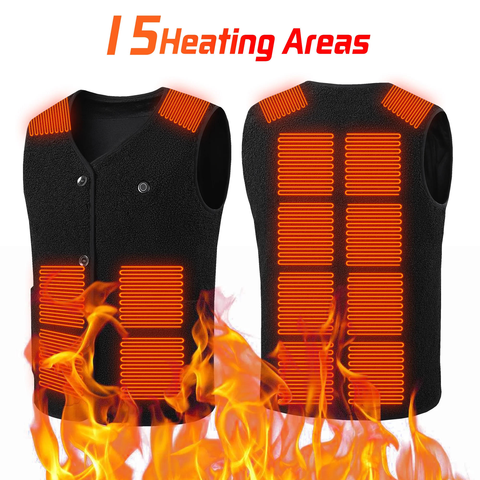 TODWARM Electric Heated Vest 15 Heating Areas Intelligent Heating Jackets Windproof Washable USB Charging Winter Sports Hiking