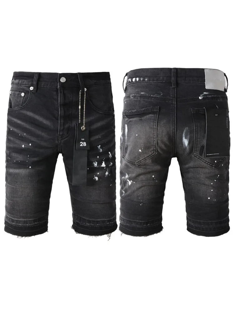 Top Quality Purple Jeans Men Shorts Black Denim Summer Holes BUTTON Shorts Jeans Male Stretch Fit Denim Jeans 5002