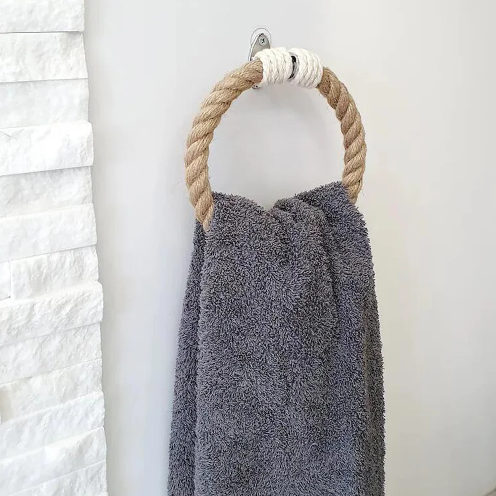 Towel Rack Bathroom Hook Decor Boho Wooden Hand Ring Holder for Wall Rope Iron Vintage