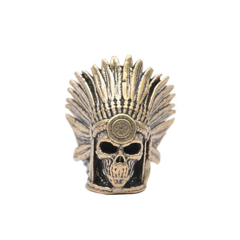 Tribal Chief Skull Head Brass Knife Beads EDC Outdoor DIY Paracord Woven Bracelets Charms Lanyard Pendants Hangings Accessories