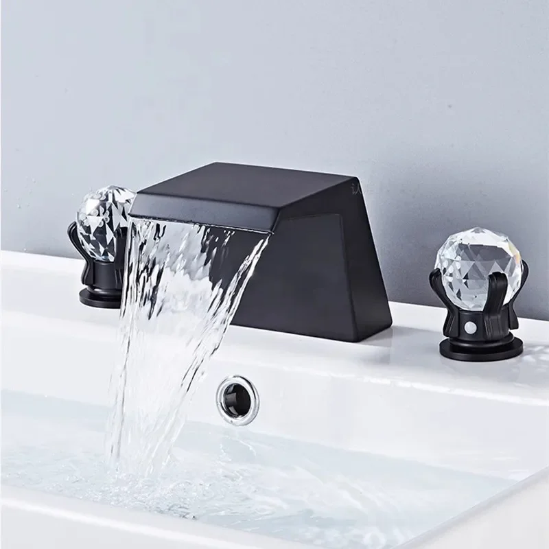 Tuqiu Luxury Brushed Gold Bathroom Faucet Brass Widespread Basin Sink 3 Hole Hot Cold Black Water Tap