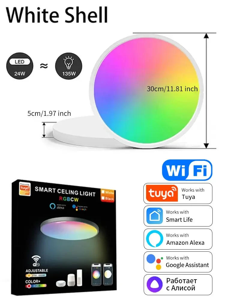 Before you buy*This product supports 220V-240V voltage, before purchasing, please be sure that your subject and residential are within the 220v voltage range. *This product only supports WiFi 2, before purchasing, please make sure that your family is using 2 domestic network to be capable to be aware the profitable connection*Light source power: 24W *Light shade RGBCW *Shell: white shell/black shell *Voltage: 220V *Dimensions: Diameter 300*50MM (mm) *Applicable places: residence room, bedroom, study, eating room, balcony *Style: modern minimalist *Average service life: 30000 (h) *Shade shape: around *WIFI: TUYA APP/smart voice assistant (Alexa Google Home, etc.) Feature- Intelligent Control: Support leadership colour and luminance via tuya/ Smartlife App; assist voice control via with Google Home Alexa Echo on tuya/Smart life app. - Voice control: Smart ceiling mild no need any hub or gateway to work, compatible with Alexa (via "smart existence app"), Alexa Google Home Assistant, leadership the wifi ceiling tender by way of your voice, No hub required. (NOTE: WiFi clever mild solely helps 2 GHz Wi-Fi network) - APP Remote Control: Turning on/off the clever ceiling Light whether you are at domestic or away, you just need to achieve an app of "smart life" can create a set for all of your clever ceiling Light and leadership all of them with just one command. Works with 2 Wi-Fi network. - Long Life Span: Lasting over 30,000 hours, Don&;t fearful about common lighting fixtures replacing. - 16 million colours for you to make a choice and make your existence colourful temperature can be adjusted (2700K-6500K adjustable), colour would be DIY, shade and brightness would be adjusted when adjusting shade and brightness. - Music Sync. The brightness of the lighting could be replaced in sync with the rhythm of your favorite music, create a chilled and quiet atmosphere. - Change any room correct right into a dance floor ,or create a relaxing and quiet atmosphere. Such as dwelling room, kitchen, bed room and so on. - Bulb group. Control all lighting fixtures on the similar time via growing groups and adding your lighting fixtures into your group. - Add lamps through wifi and Bluetooth-compatible, the added lamps can be managed individually, grouped, and scenes could be created with one-key control.