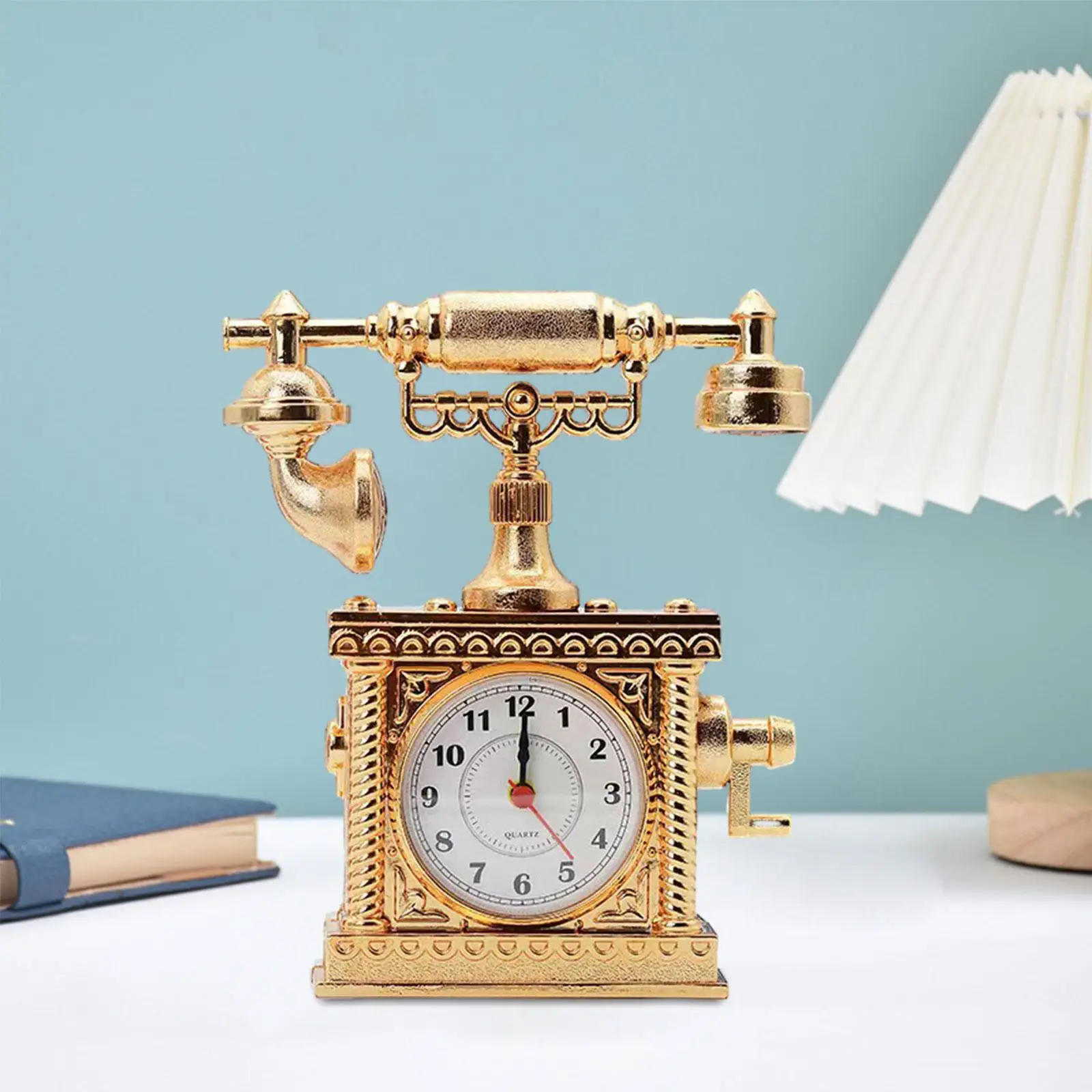 Vintage Telephone Table Clock Statue Old Fashion Clock Desktop Decorative Collectible Home Decoration Housewarming Gift