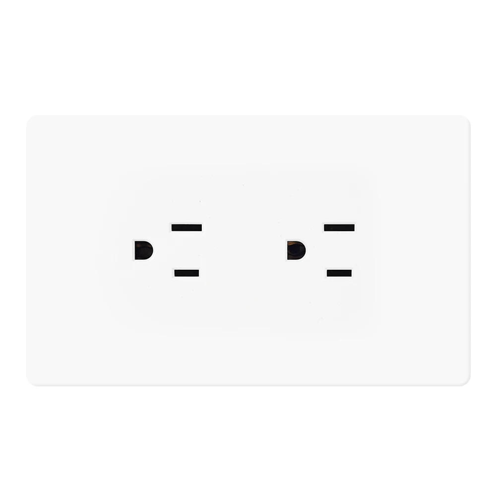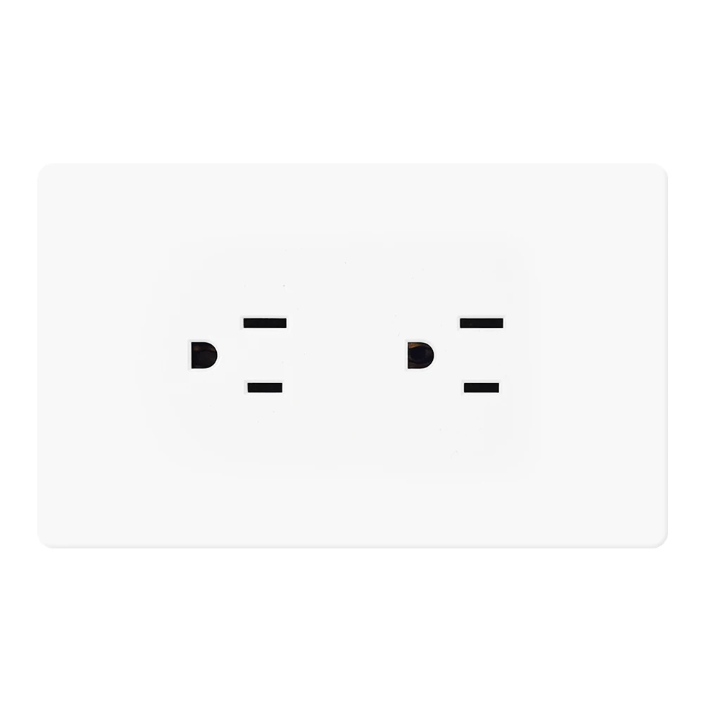 KH1 Full Screen Plastic Panel Series twin frame US socket Input voltage: AC 15A 110-220V Panel size: 124*76mm Mounting hole distance: 85mm Back