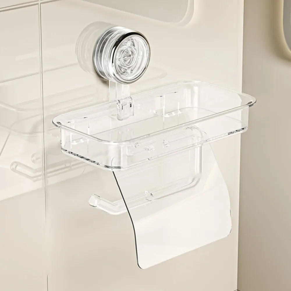 Wall Mounted Suction Cup Tissue Holder Punch-free Stable Bathroom Storage Rack PET+ABS Waterproof Toilet Paper Holder Home