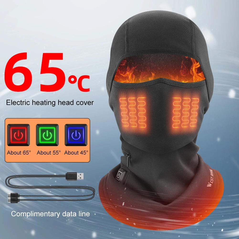 Warm Winter Balaclava Fleece Cycling Cap USB Heating Headgear Neck Warmer Electric Heated Face Masks for Ski Bicycle Motorcycle