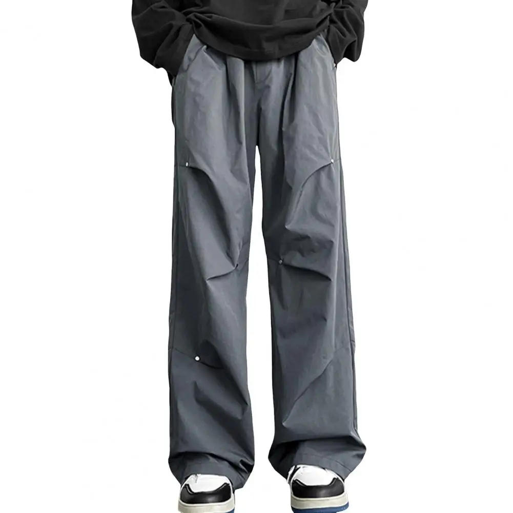 Waterproof Unisex Cargo Pants Rivet Decor Loose Wide Leg Trousers Side Pockets Elastic Waist Streetwear Outdoor Long Trousers