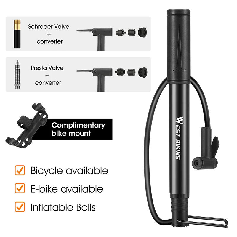 WEST BIKING Bike Pump Aluminum Alloy Bicycle Hand Air Pump Ball Tire Inflator Schrader Presta Valve MTB Road Cycling Pump