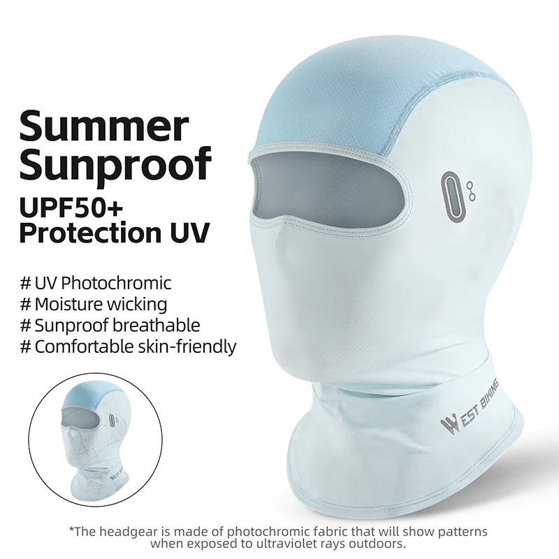 WEST BIKING Summer Breathable Cycling Caps UV Photochromic Pattern UPF 50+ Sun Protection Ice Silk Balaclava Cooling Sport Gear
