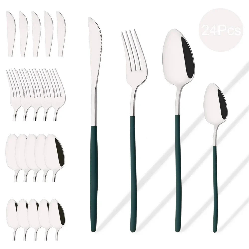 Western Cutlery Set 24 Piece Tableware Set Stainless Steel Dinnerware Black Silver Spoon Fork Knife Dinner Set Home Flatware