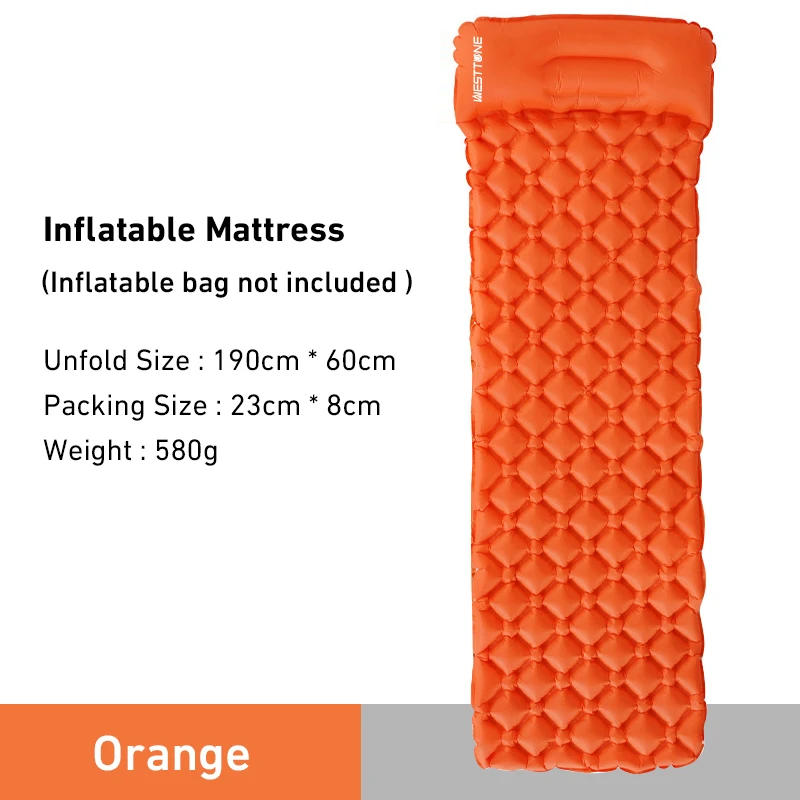 Westtune Camping Inflatable Mattress with Pillow Ultralight Outdoor Sleeping Pad Inflating Air Mat for Travel Hiking Backpacking