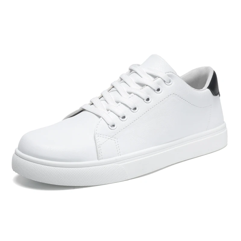 White Leather Sneakers Men Big Size 46 Low Top Lace-Up Men's Skateboard Shoes Comfy Flat Sport Shoes For Man Zapatillas De Skate