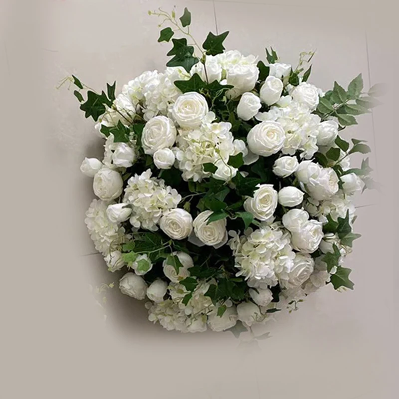 White Pink Luxury Baby breath Rose Flower Arrangement Outdoor Wedding Backdrop Arch Decor Floral Row Runner Event Party Props