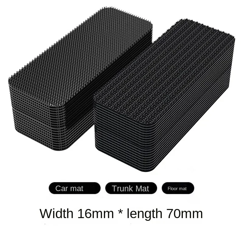 Material: Nylon+polyester Size: Square: About 5x5cm Round: Diameter about 5cm Rectangle: 1 Features: Equipped with adhesive backing, stable adhesion, invisible and traceless, compatible for various scenarios Quantity: 10/30/50pairs Package includes: 1pair of auto floor mat stickers (1pc with suede and 1pc with hook)