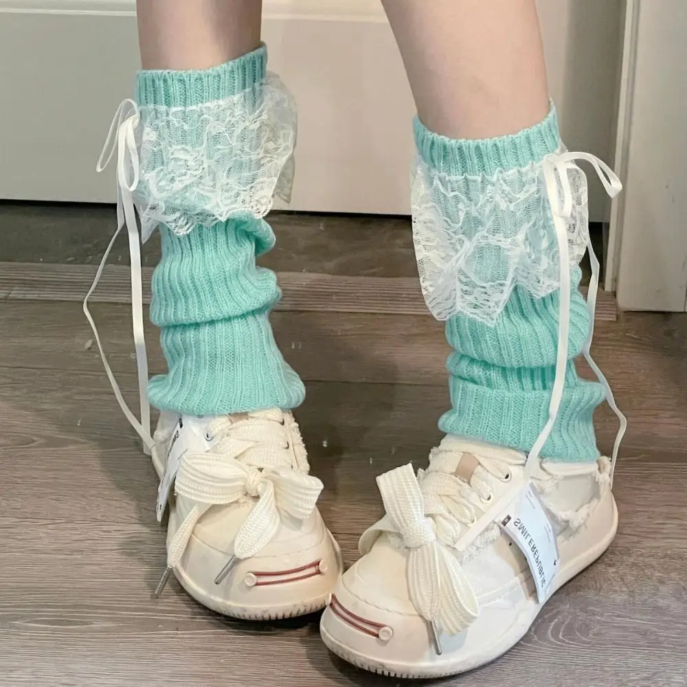 Woman Leg Warmers Autumn And Winter Ribbon Lolita Black Knee Warmers Long Socks JK Knitted Girl White Leg Warmers