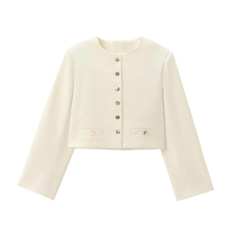 Women Cropped Jacket Fashion O Nack Long Sleeve Single Breasted Fake Pockets 2024 New Autumn Female High Street Short Outerwear