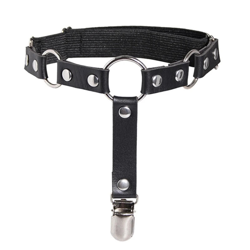 Women Punk Elastic Faux Leather Thigh Garter Belt with Buckle Non-Slip Clips