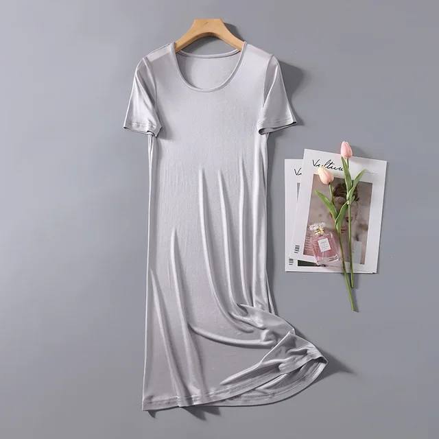 Women's 50% Silk 50% Viscose Knit Stretchy Short Sleeve Full Slip Sleepwear Nightgown Nightdress XS327
