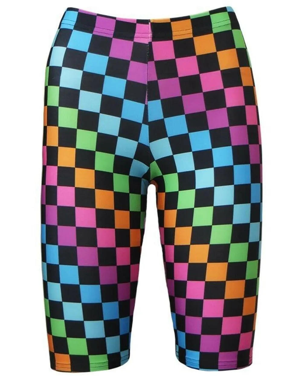 Women's Rainbow Plaid Shorts Casual Short Pants Sweatpants Tight Short Leggings Sport Fitness Bodybuilding Running Jogging Pants